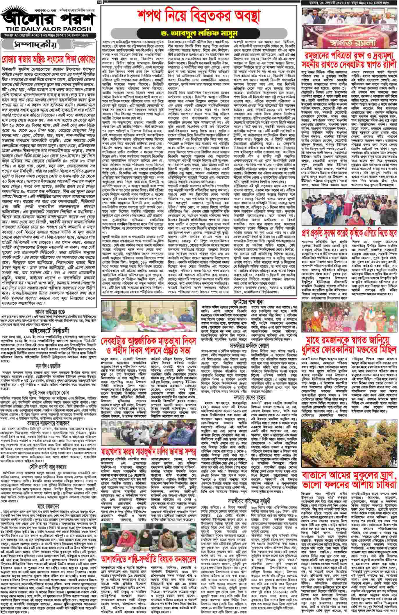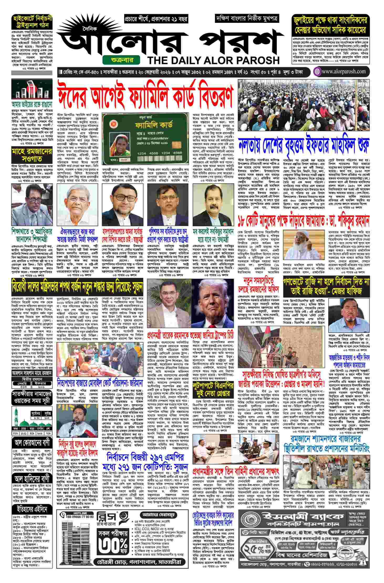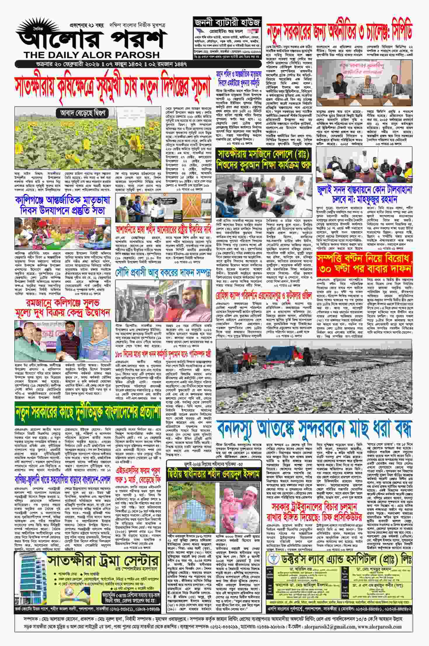 আজ ২০ ফেব্রুয়ারী: দৈনিক আলোর পরশ পত্রিকার ই পেপার