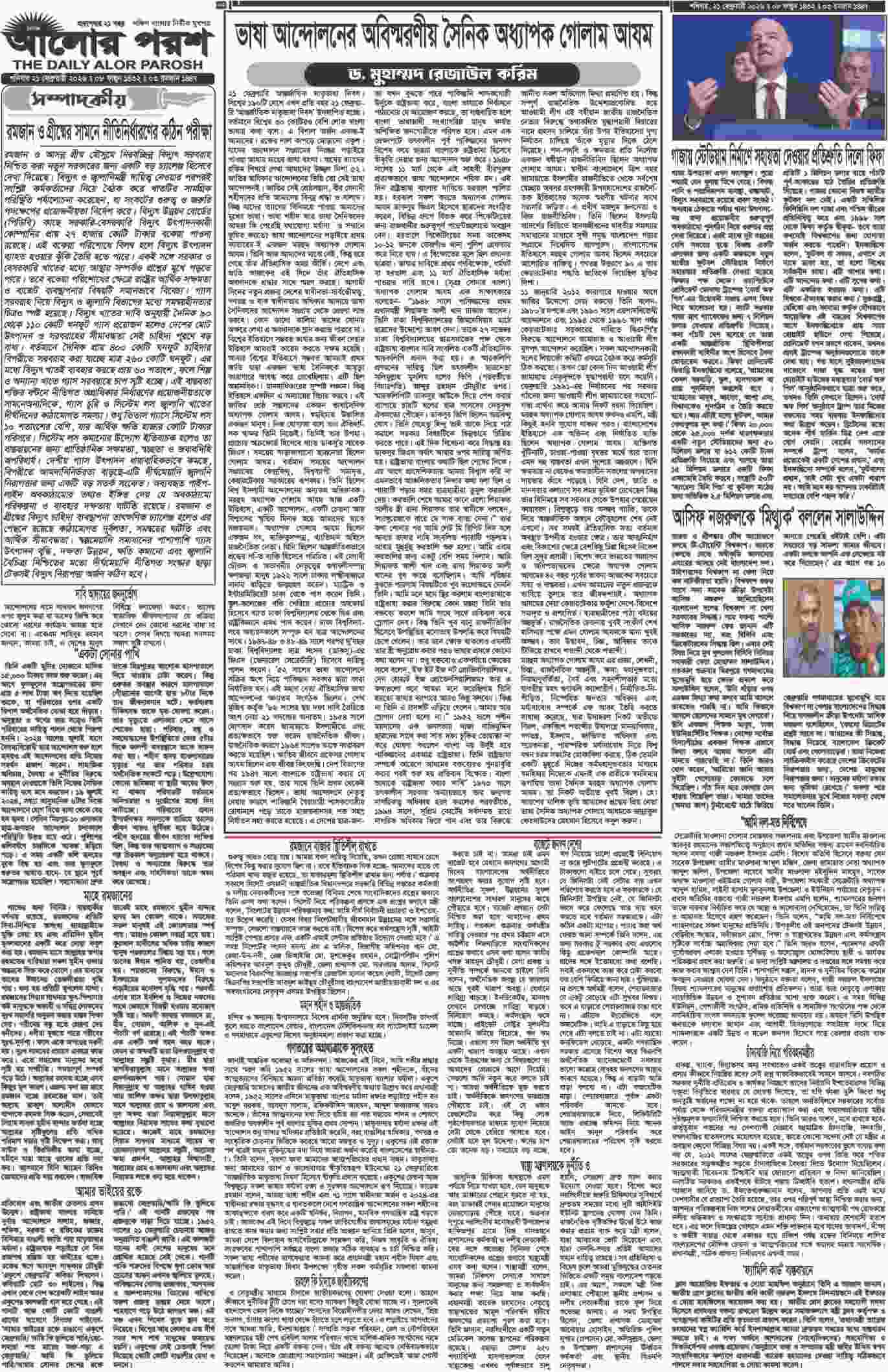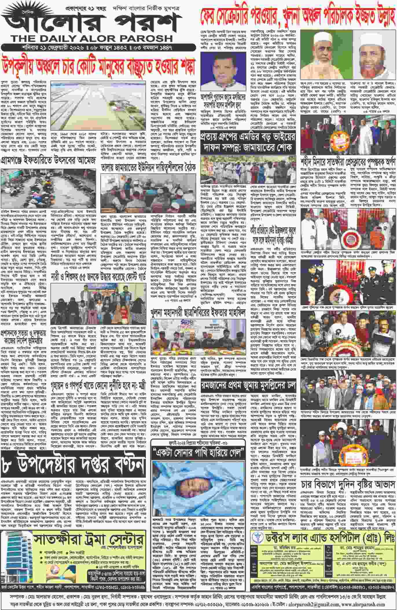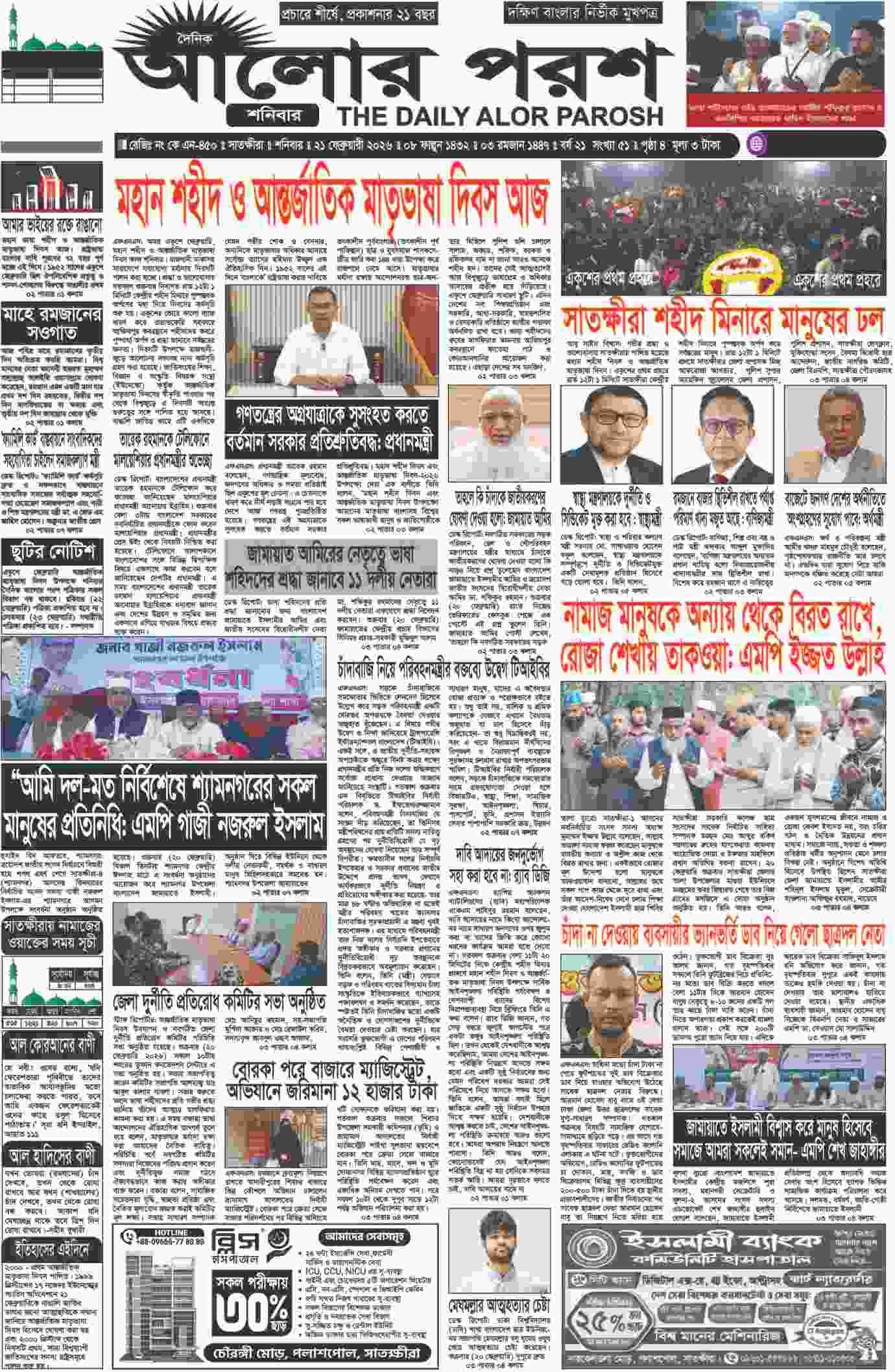 আজ ২১ ফেব্রুয়ারী ২০২৬। আজকের আলোর পরশ পত্রিকা