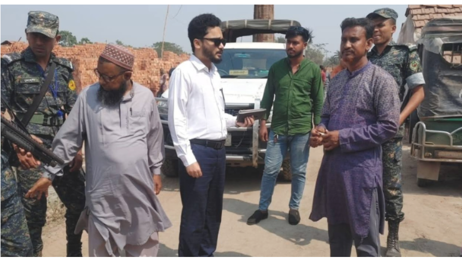 নিজস্ব প্রতিবেদক: সাতক্ষীরার শ্যামনগরে বালুমহাল ও মাটি ব্যবস্থাপনা আইন লঙ্ঘন করে অবৈধভাবে জমি থেকে মাটি উত্তোলন করায় তিনটি ভাটা মালিককে ১০ লাখ টাকা জরিমানা করেছে ভ্রাম্যমাণ আদালত। বৃহস্পতিবার (২৬ ফেব্রুয়ারি) সাতক্ষীরা জেলা প্রশাসনের নির্বাহী ম্যাজিস্ট্রেট- এর নেতৃত্বে ইট ভাটায় অভিযান চালিয়ে ভ্রাম্যমাণ আদালত পরিচালনা করে এই জরিমানা করা হয়। জানা যায়, শ্যামনগর উপজেলার রামজীবনপুর এলাকার মেসার্স আশা ব্রিকস, নাটুয়ারবে-এলাকার মেসার্স মোস্তফা ব্রিকস ও ইসমাইলপুর এলাকার মেসার্স এবি ব্রিকস এর মালিকগণ তাদের ভাটায় ইট বানানোর জন্য পার্শ্ববর্তী জমি থেকে অবৈধভাবে মাটি উত্তোলন করে আসছিলো। বিষয়টি জানতে পেরে নির্বাহী ম্যাজিস্ট্রেট মো. নাভিল হোসেন তামীম উল্লিখিত তিনটি ভাটায় পৃথকভাবে অভিযান পরিচালনা করে। এসময় অভিযোগের সত্যতা পাওয়ায় বালুমহাল ও মাটি ব্যবস্থাপনা আইন, ২০১০” এর ৭(ক) এবং ১৫ (১) ধারায় ভ্রাম্যমাণ আদালত পরিচালনা করে মেসার্স মোস্তফা ব্রিকস ও মেসার্স আশা ব্রিকস এর মালিকের প্রত্যেককে ৪ লাখ করে মোট ৮ লাখ ও মেসার্স এবি ব্রিকস এর মালিককে ২ লাখ টাকা জরিমানা করেন। ইট ভাটায় ভ্রাম্যমাণ আদালত পরিচালনাকালে নির্বাহী ম্যাজিস্ট্রেট মো. নাভিল হোসেন তামীমের সাথে পরিবেশ অধিদপ্তর, সাতক্ষীরার সহকারী পরিচালক মো. আসাদুজ্জামানসহ পুলিশ ও আনসার সদস্যরা উপস্থিত ছিলেন।