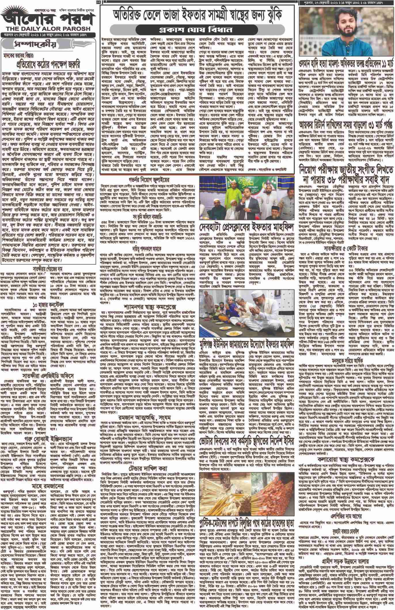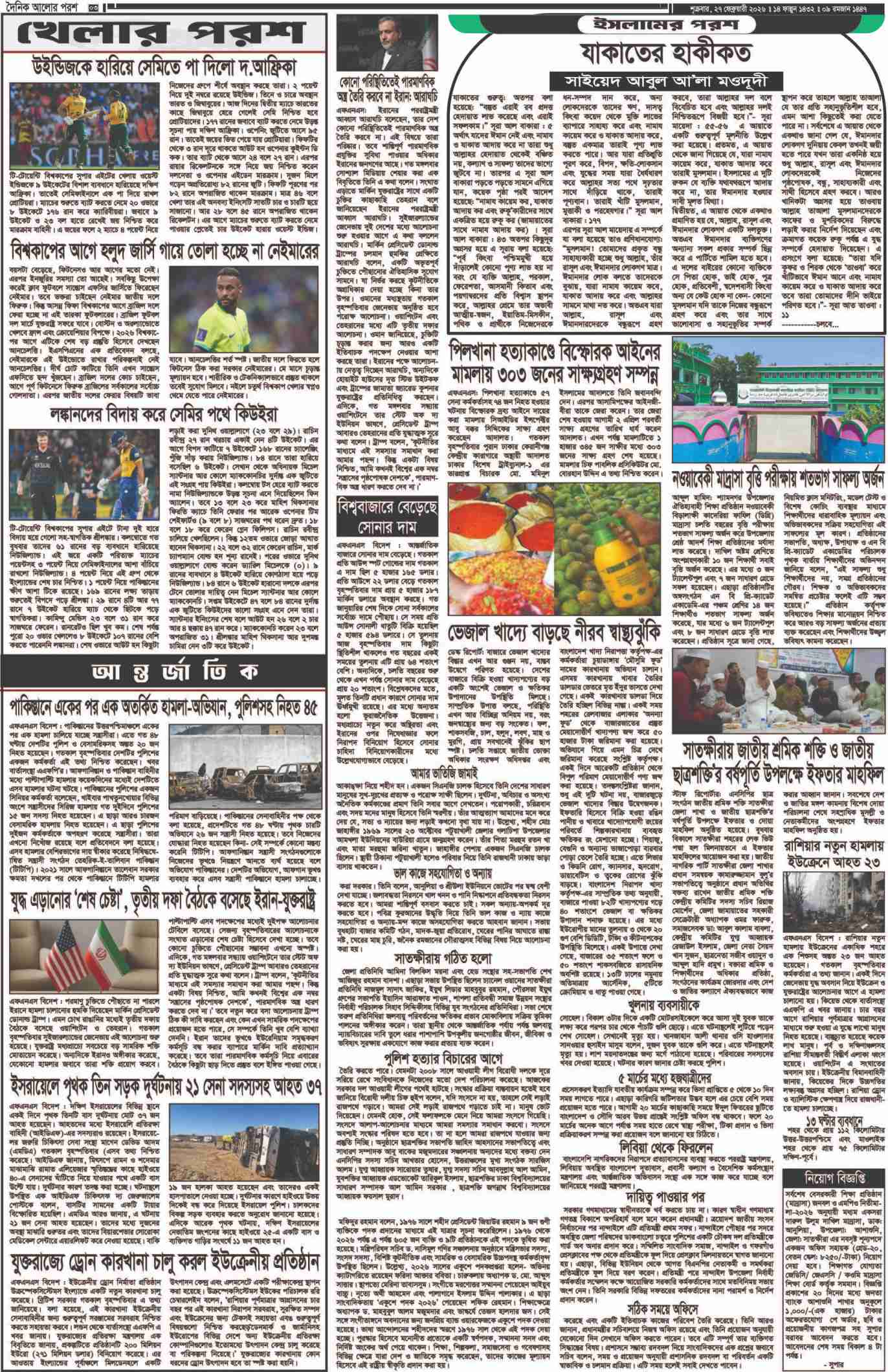আজ ২৭ ফেব্রুয়ারী’২০২৬: দৈনিক আলোর পরশ পত্রিকা