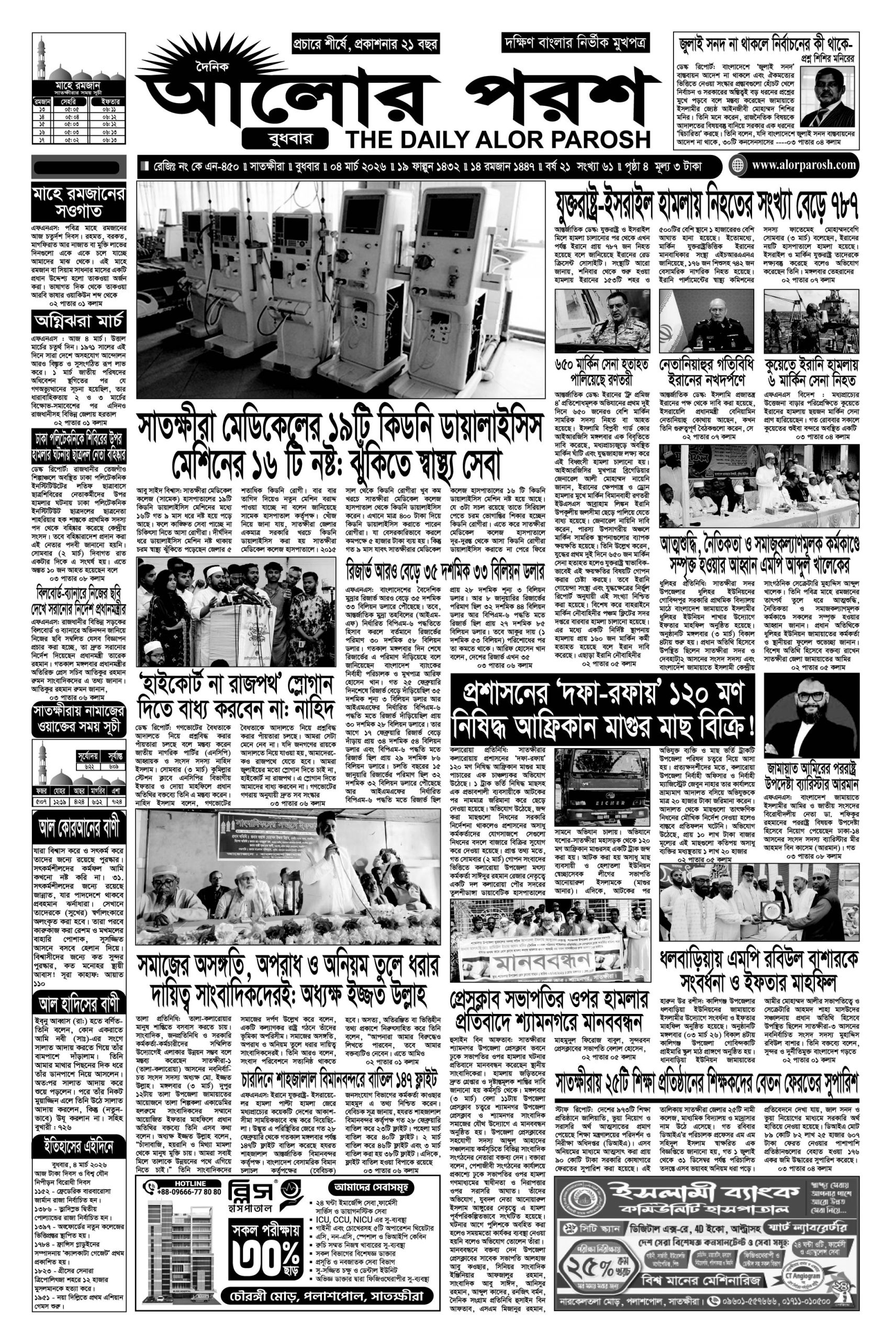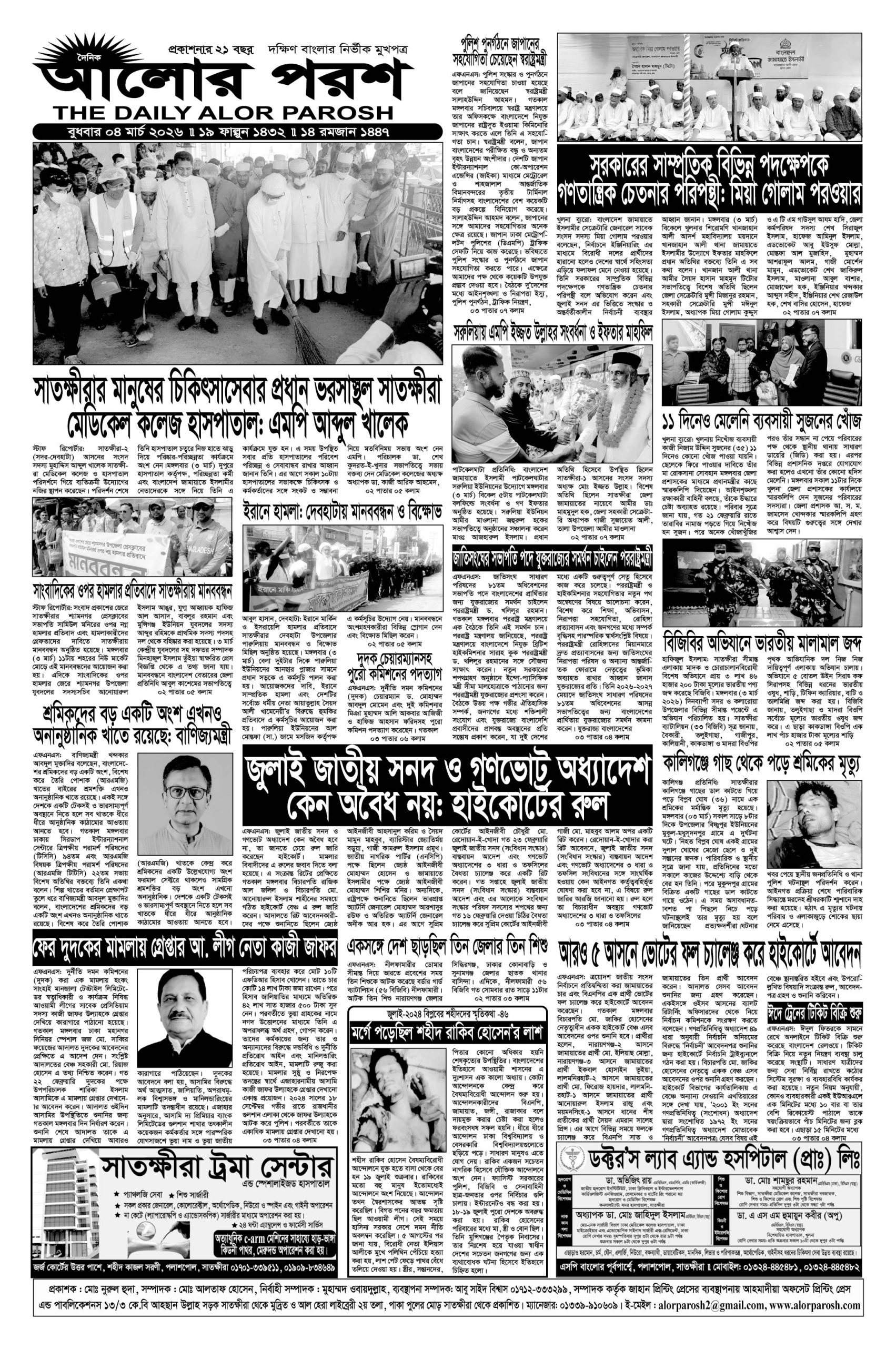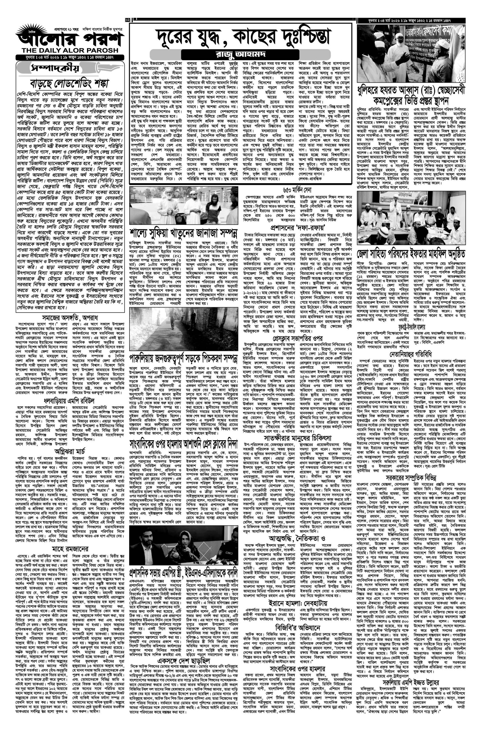 আজ ০৪ মার্চ: দৈনিক আলোর পরশ পত্রিকার ই-পেপার