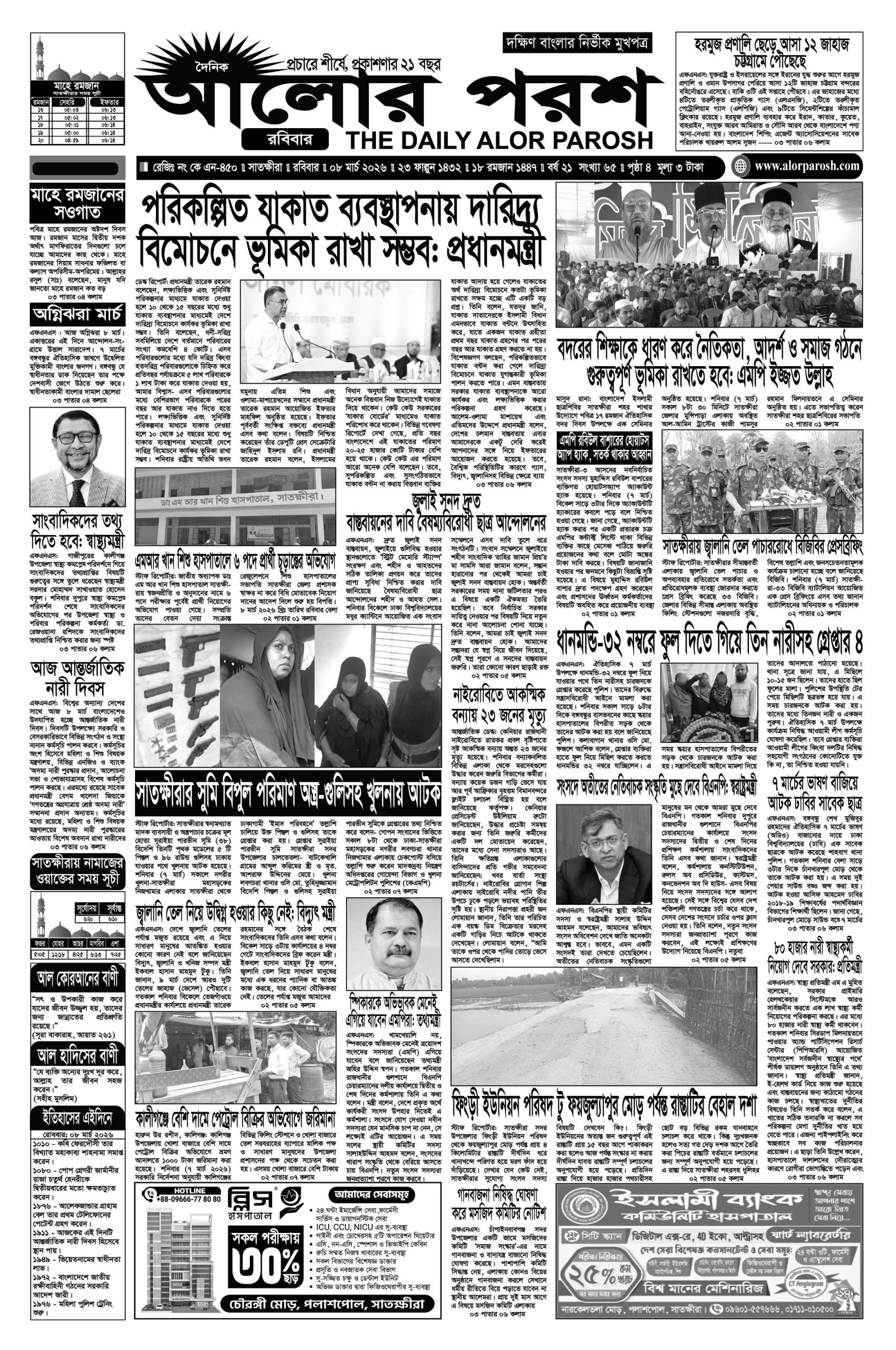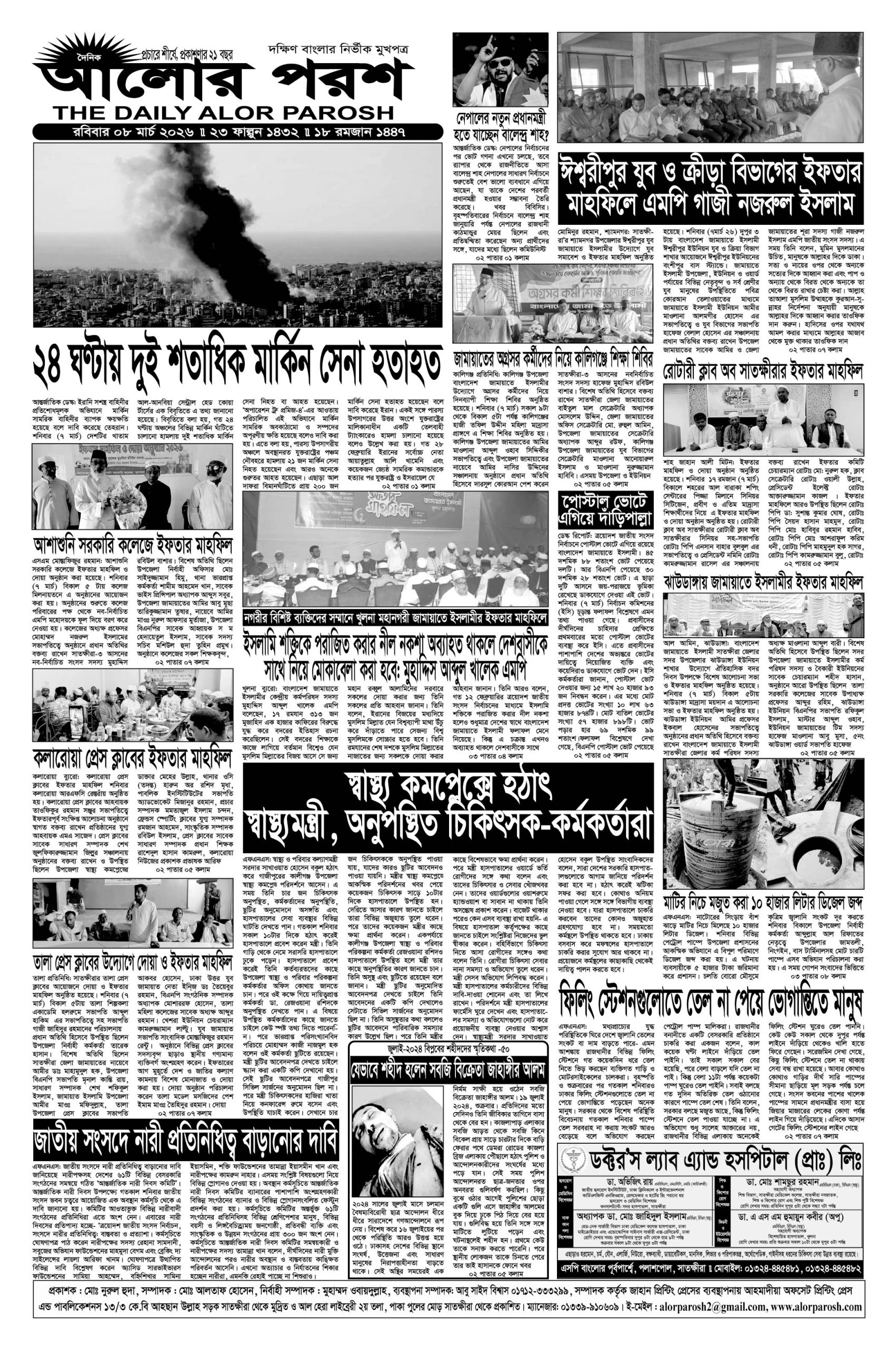 আজ ০৮ মার্চ: দৈনিক আলোর পরশ পড়ুন ই-পেপারে