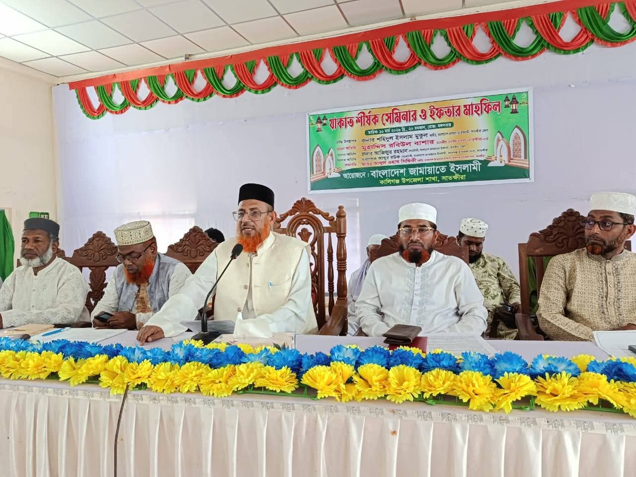 মোঃ হারুন উর রশীদ: সাতক্ষীরা জেলার কালিগঞ্জে দারিদ্র্য বিমোচন ও সামাজিক সহায়তার কার্যক্রম জোরদার করতে ‘যাকাত’ শীর্ষক সেমিনার অনুষ্ঠিত হয়েছে। মঙ্গলবার (১০ মার্চ ২০২৬) বিকাল ২টায় কালিগঞ্জ উপজেলা অডিটোরিয়ামে উপজেলা জামায়াতে ইসলামীর আয়োজনে অনুষ্ঠানটি অনুষ্ঠিত হয়। উপজেলা জামায়াতে আমীর মাওলানা আব্দুল ওহাব সিদ্দিকীর সভাপতিত্বে এবং উপজেলা জামায়াতে সেক্রেটারি অধ্যাপক আব্দুর রউফের সঞ্চালনায় প্রধান অতিথি হিসেবে মূল প্রবন্ধ উপস্থাপন করেন সাতক্ষীরা জেলা জামায়াতে ইসলামীর আমীর ও সিটি কলেজের অবসরপ্রাপ্ত উপাধ্যক্ষ শহিদুল ইসলাম মুকুল। তিনি তার প্রবন্ধে যাকাত ব্যবস্থাপনার সুষ্ঠু প্রয়োগের মাধ্যমে সমাজের দরিদ্র ও অসহায় জনগোষ্ঠীর আর্থিক স্বনির্ভরতা অর্জনের বাস্তবসম্মত দিক ও সম্ভাবনার ওপর আলোকপাত করেন। তিনি বলেন, প্রাতিষ্ঠানিক ও পরিকল্পিত যাকাত ব্যবস্থাপনা দারিদ্র্য হ্রাসে কার্যকর ভূমিকা রাখতে পারে। বিশেষ অতিথি হিসেবে আলোচনা করেন সাতক্ষীরা জেলা জামায়াতের সেক্রেটারি মাওলানা আজিজুর রহমান, কালিগঞ্জ উপজেলা জামায়াতের সহকারী সেক্রেটারি মাওলানা আনোয়ারুল ইসলাম, উপজেলা জামায়াতে নায়েবে আমীর নাসির ও বাইতুল মাল সেক্রেটারি আবু রাসেল আশকারী। সেমিনারে উপজেলা ও ইউনিয়নের বিভিন্ন পর্যায়ের দায়িত্বশীল ব্যক্তিবর্গ, বিভিন্ন শ্রেণি-পেশার মানুষ এবং প্রিন্ট ও ইলেকট্রনিক মিডিয়ার সাংবাদিকবৃন্দ উপস্থিত ছিলেন। বক্তারা যাকাত ব্যবস্থাপনার গুরুত্ব ও কার্যকর বাস্তবায়নের মাধ্যমে দারিদ্র্য হ্রাসে সামাজিক সম্পৃক্ততার ওপর গুরুত্বারোপ করেন।