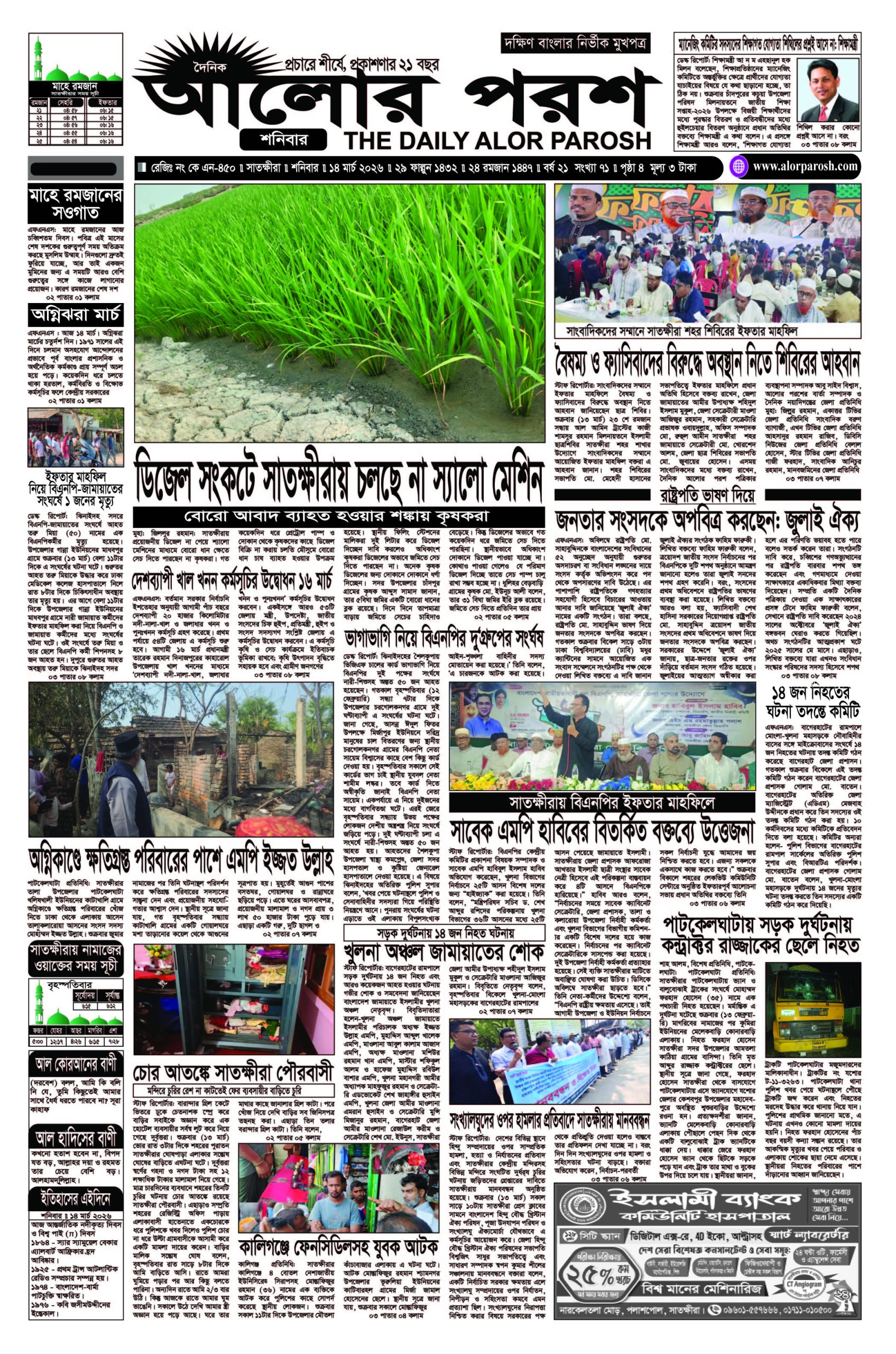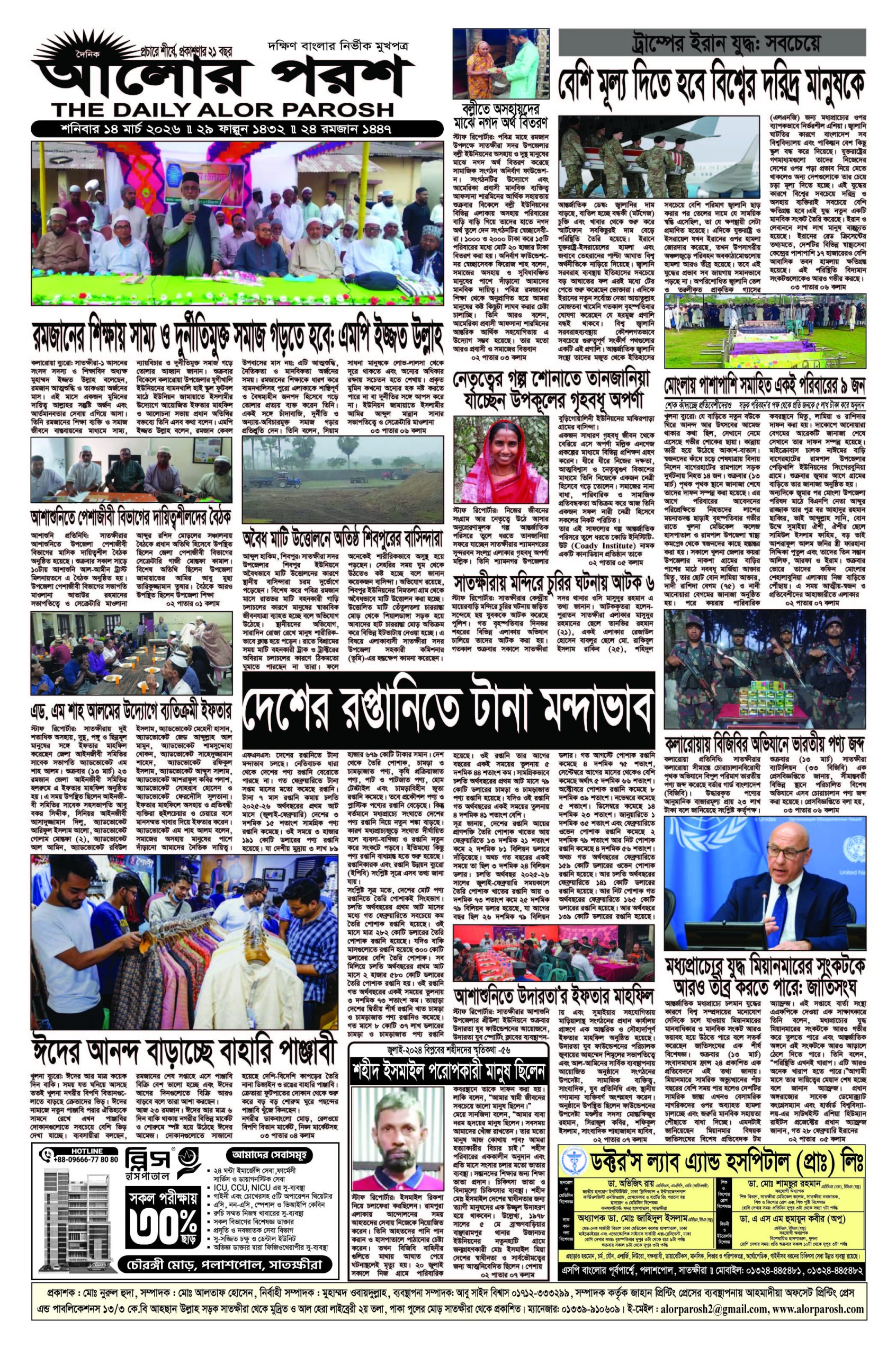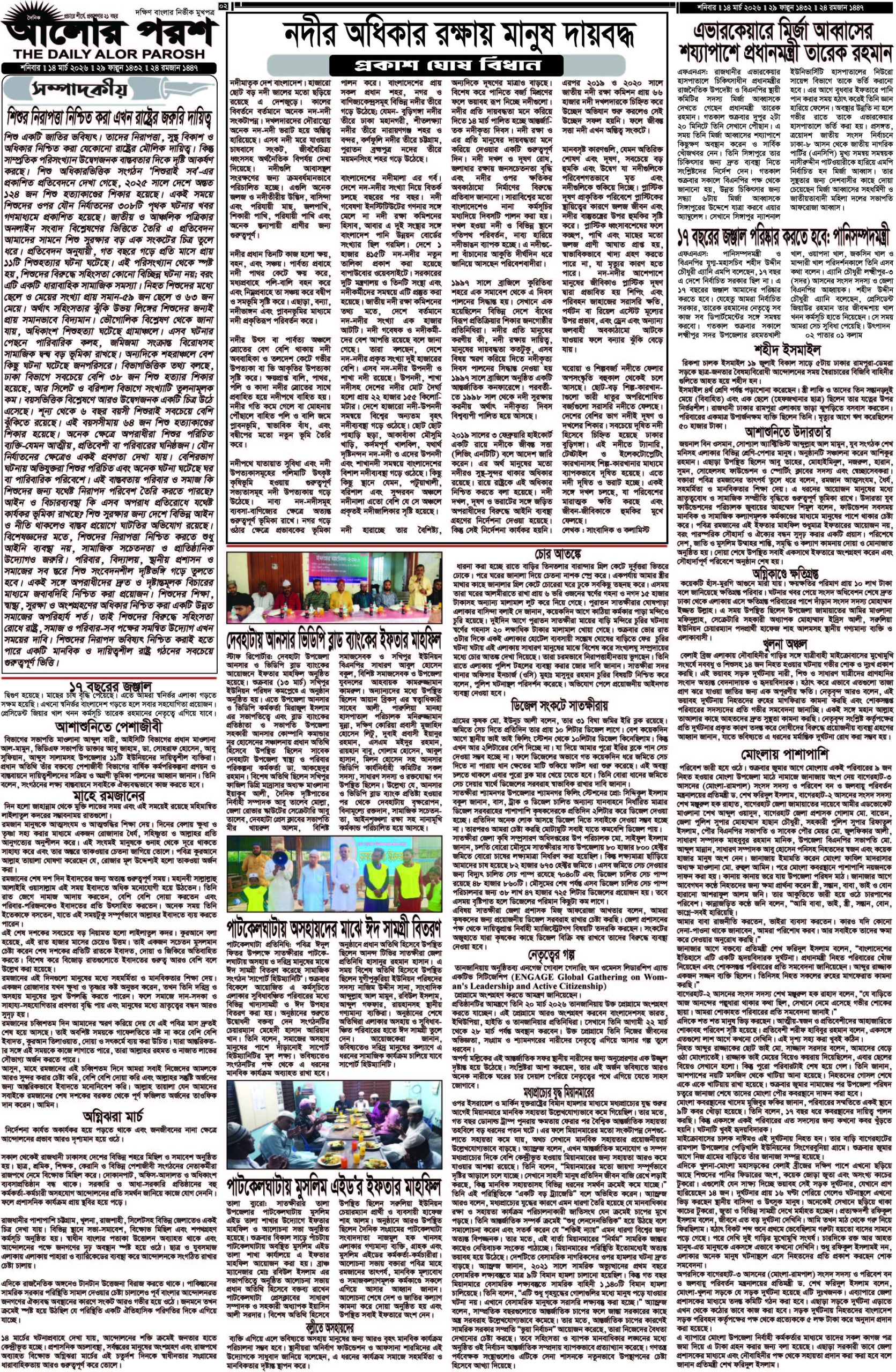 আজ ১৪ মার্চ; দৈনিক আলোর পরশ পড়ুন ই-পেপারে