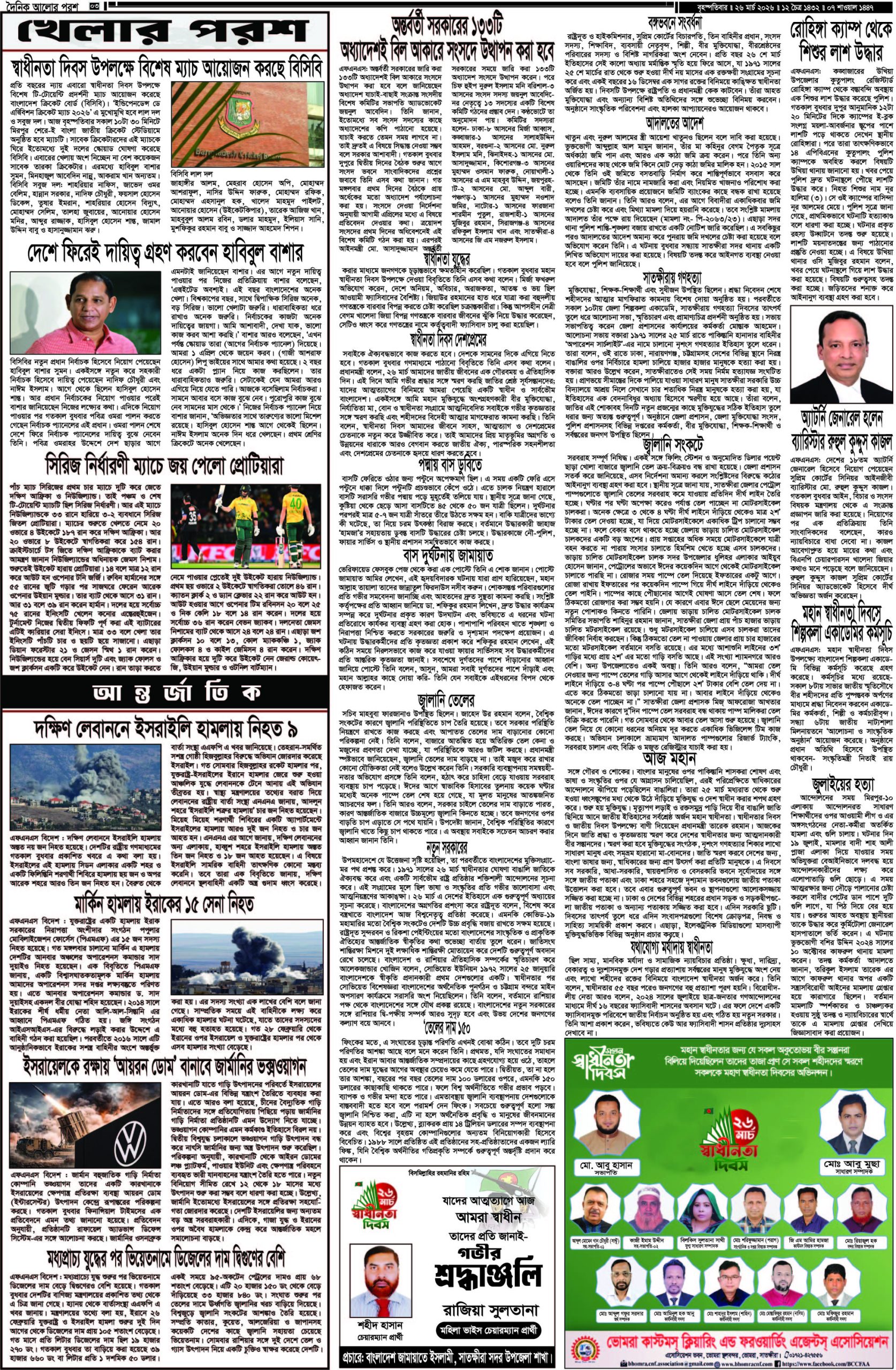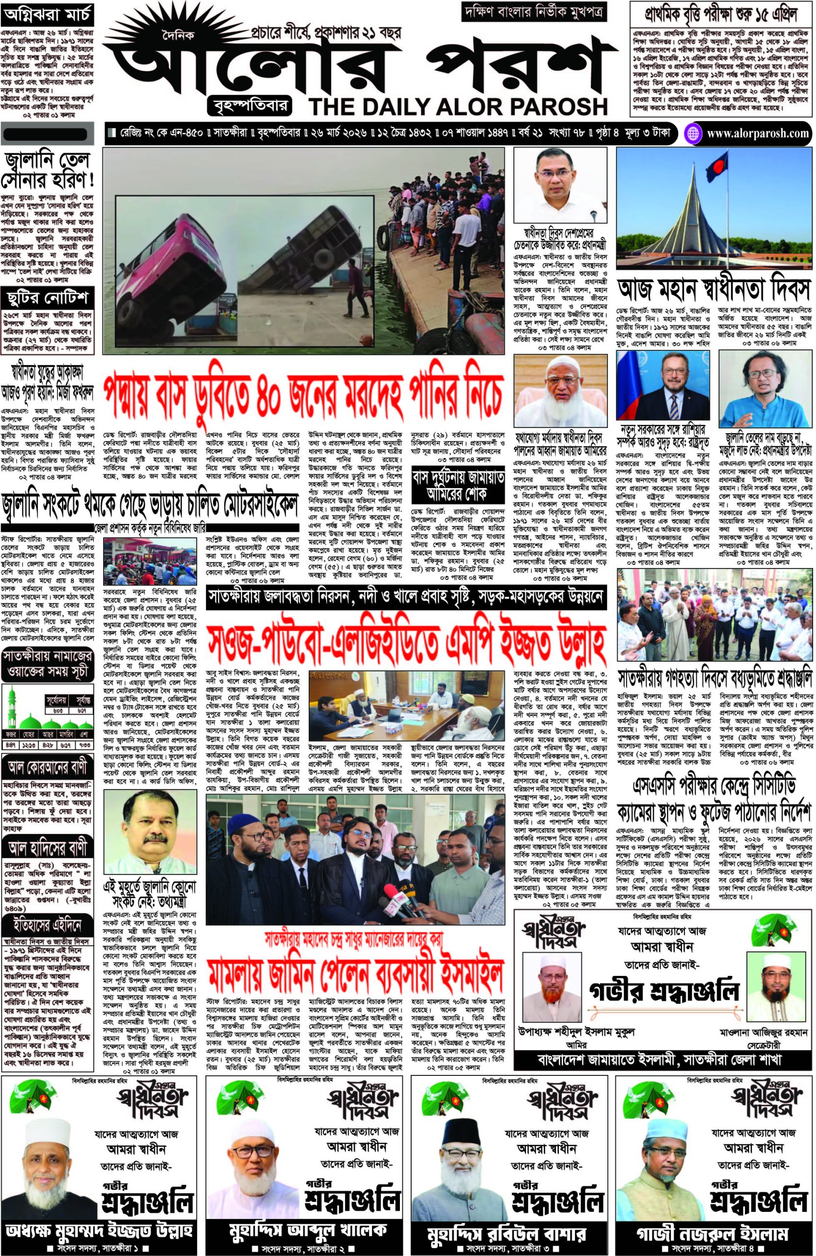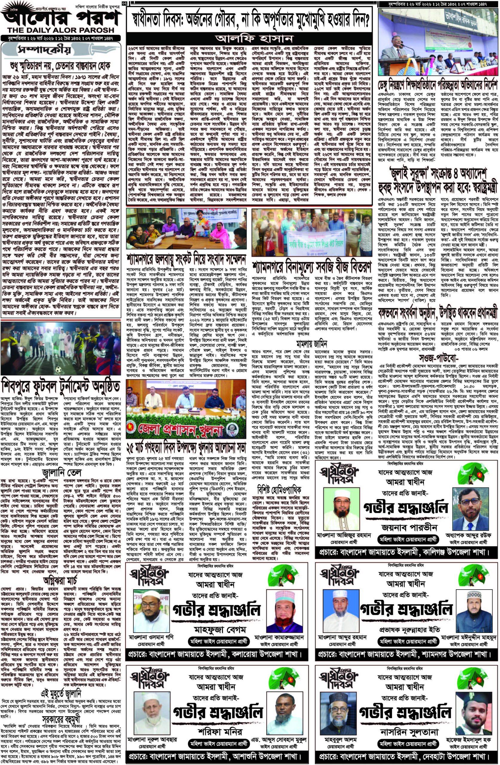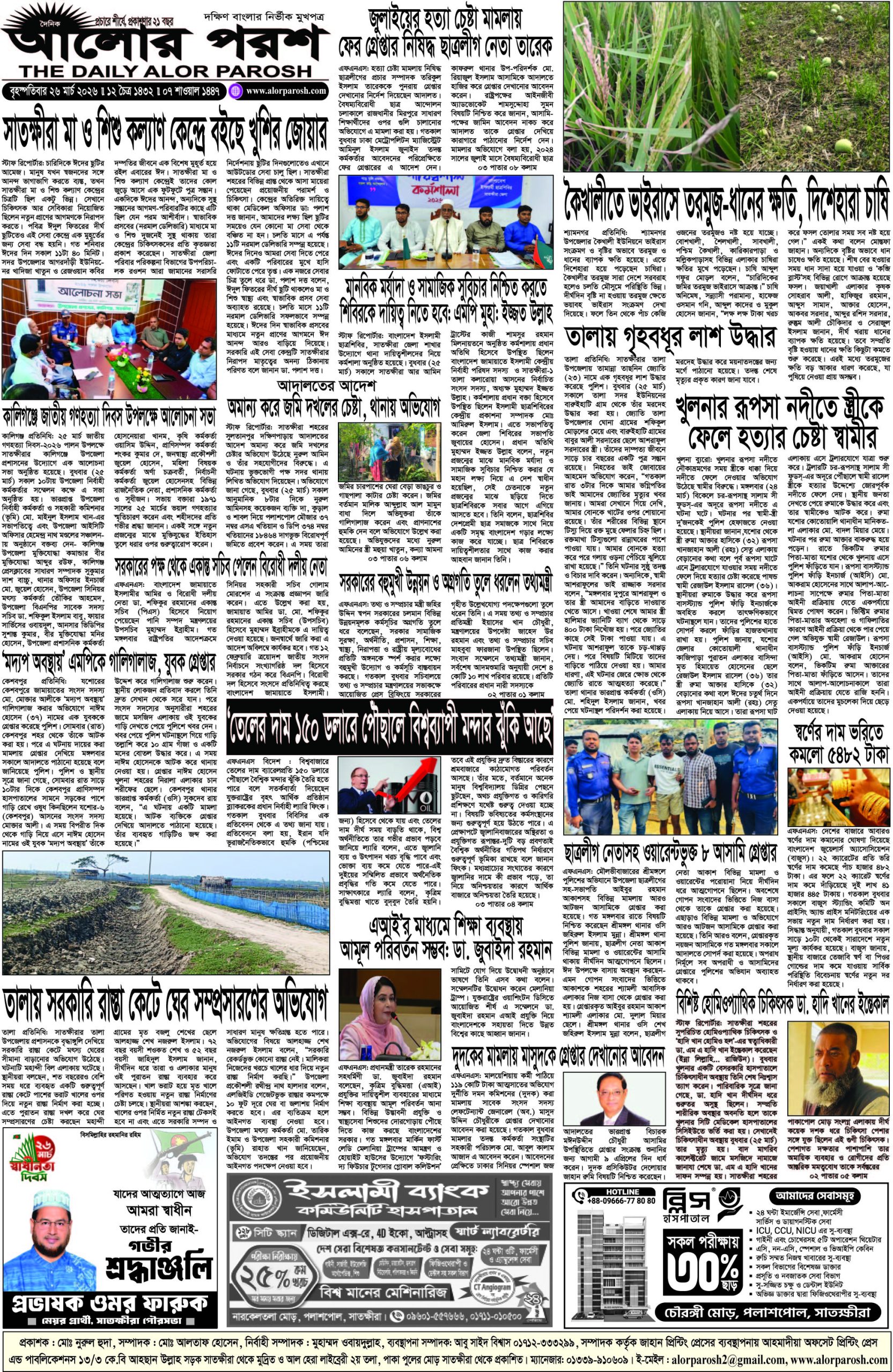 আজ ২৬ মার্চ ২০২৬; দৈনিক আলোর পরশ পড়ুন ই-পেপারে