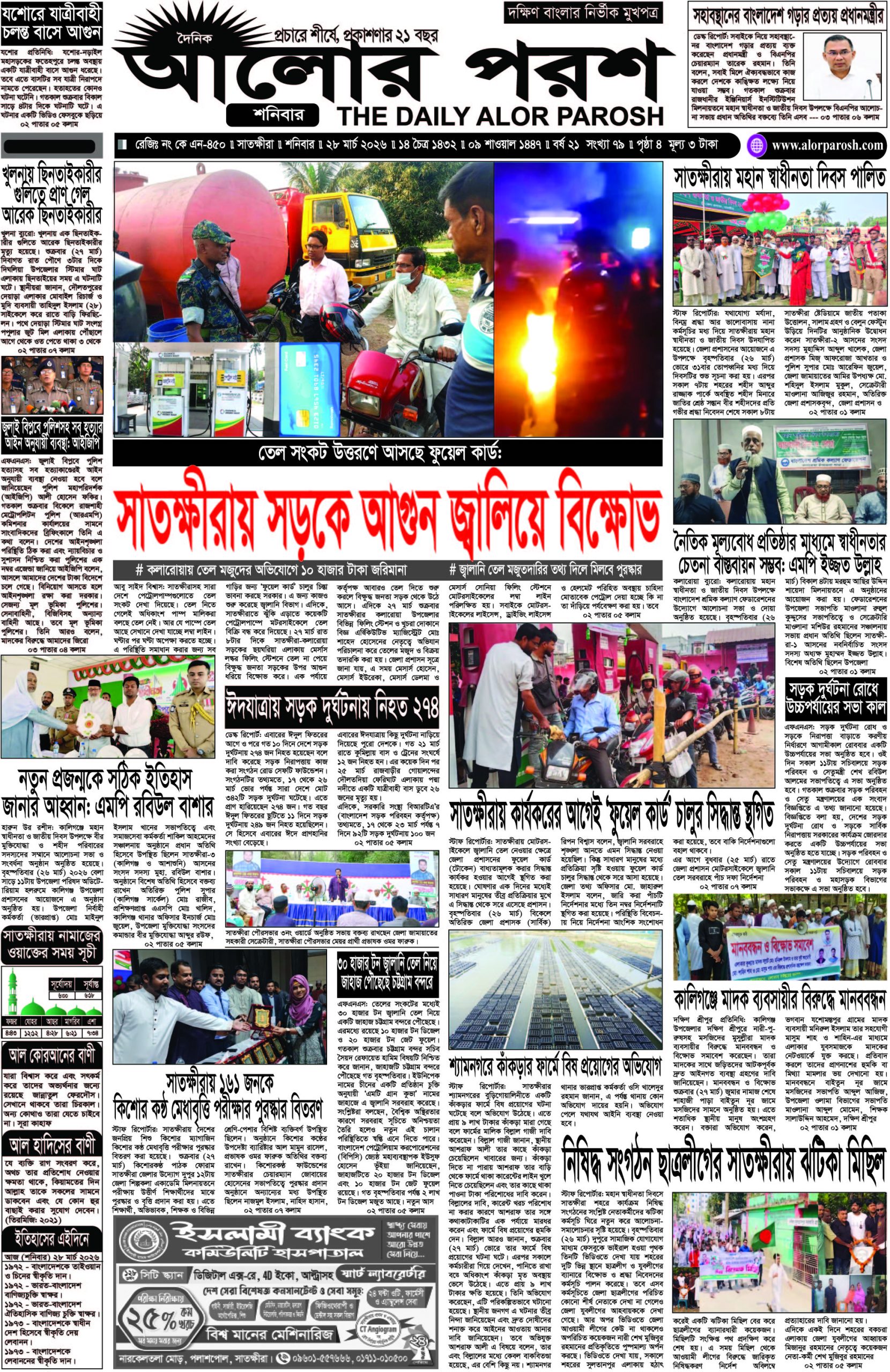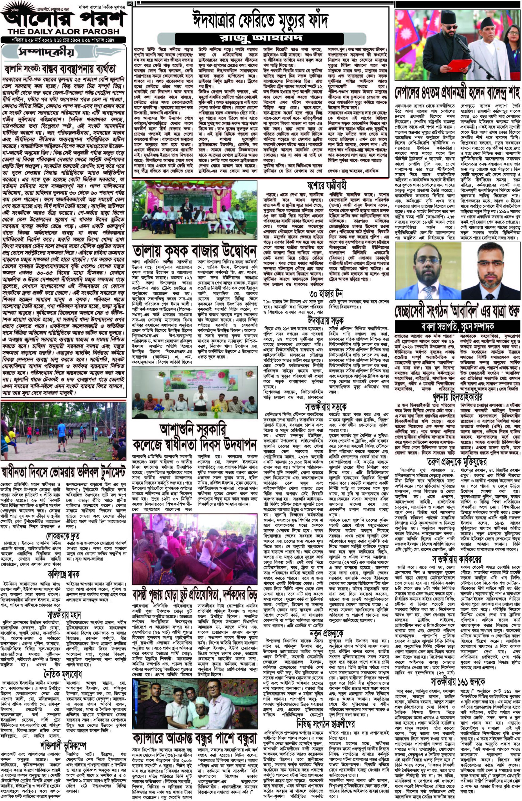 আজ ২৮ মার্চ’২০২৬; দৈনিক আলোর পরশ পড়ুন ই-পেপারে
