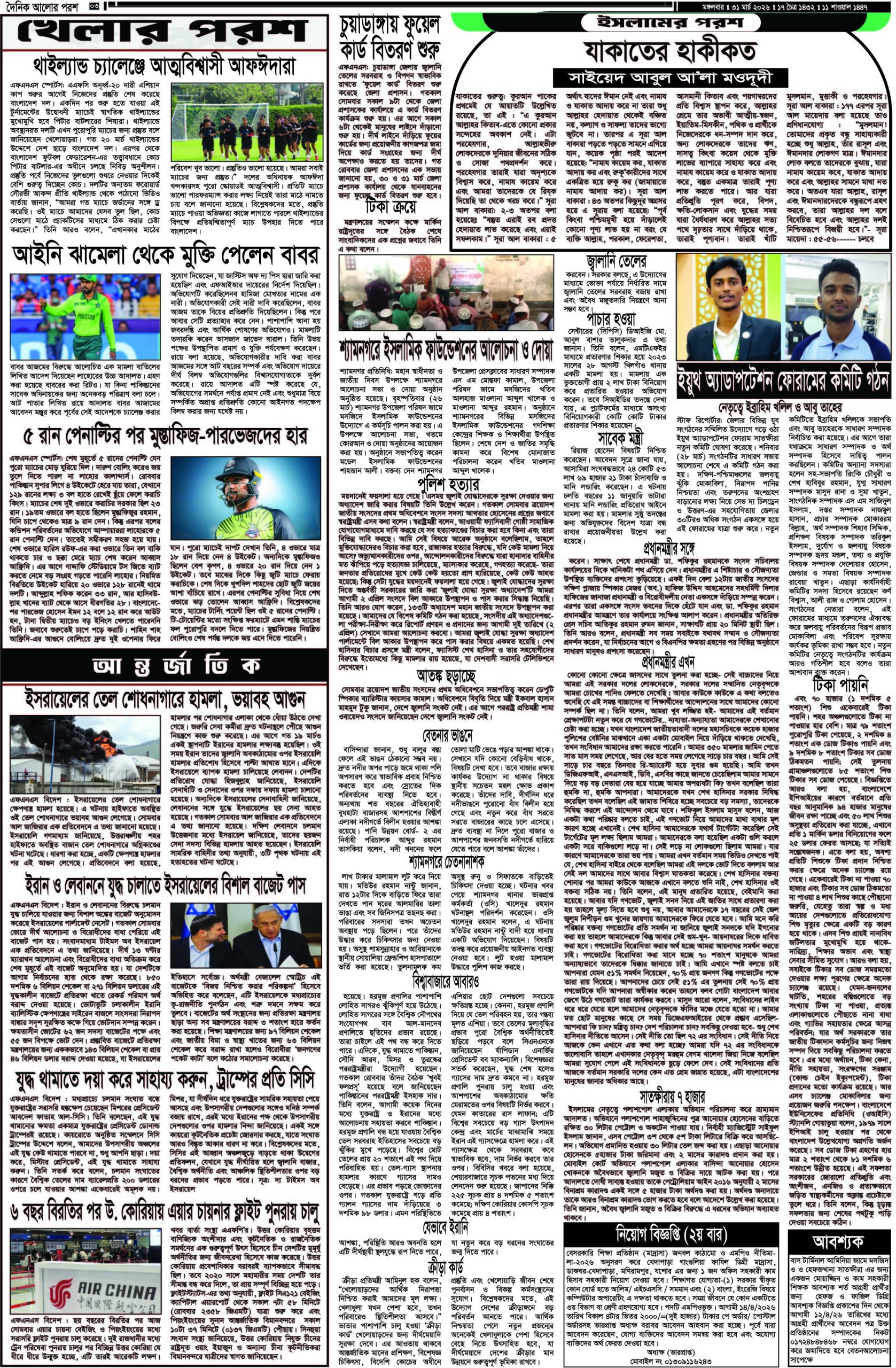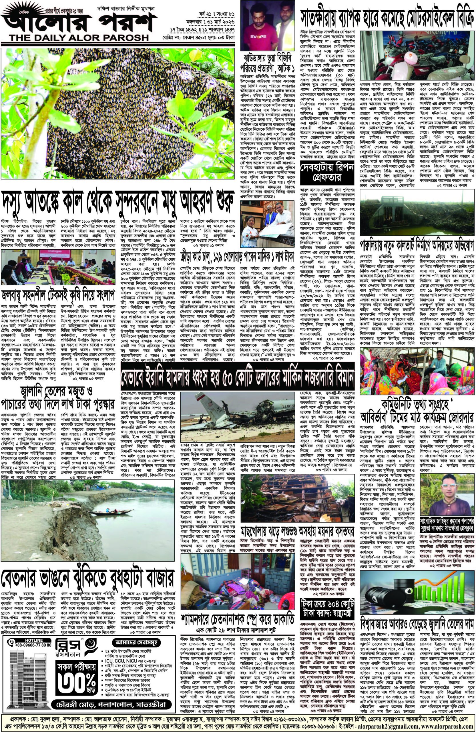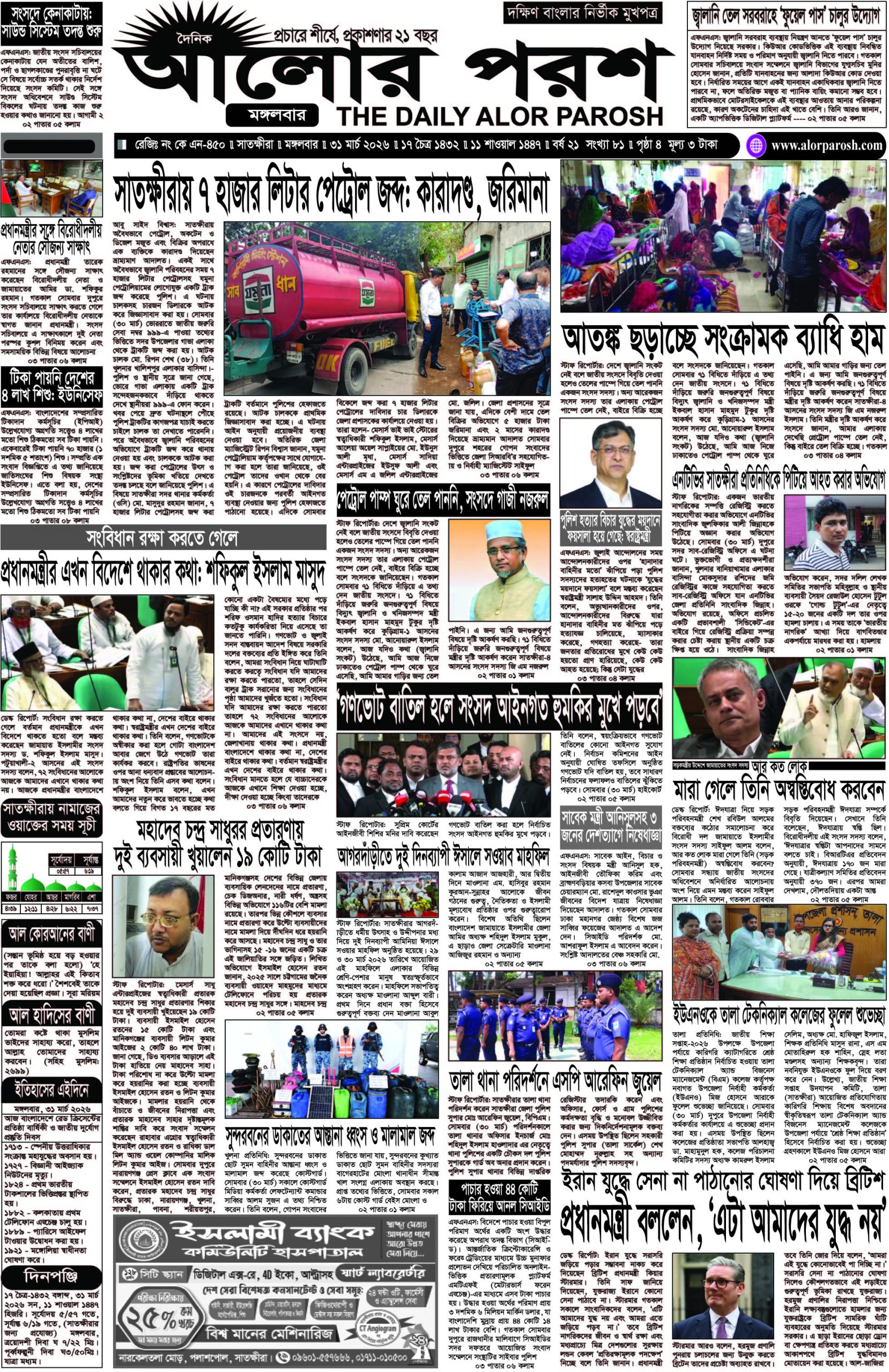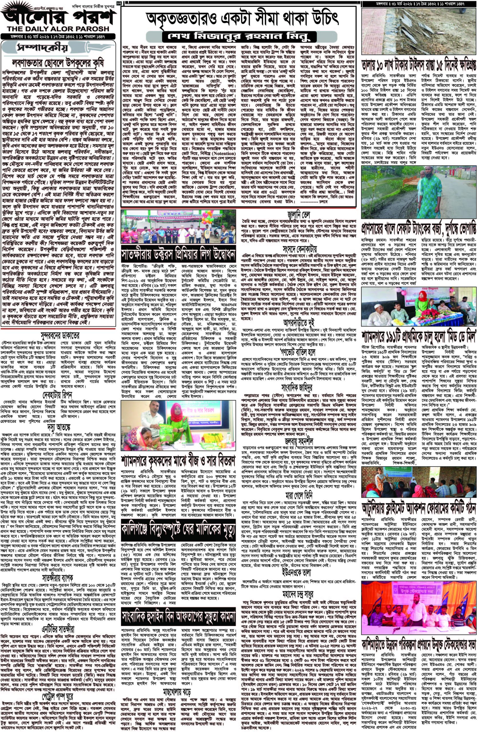 আজ ৩১ মার্চ ২০২৬; দৈনিক আলোর পরশ পড়ুন ই পেপারে