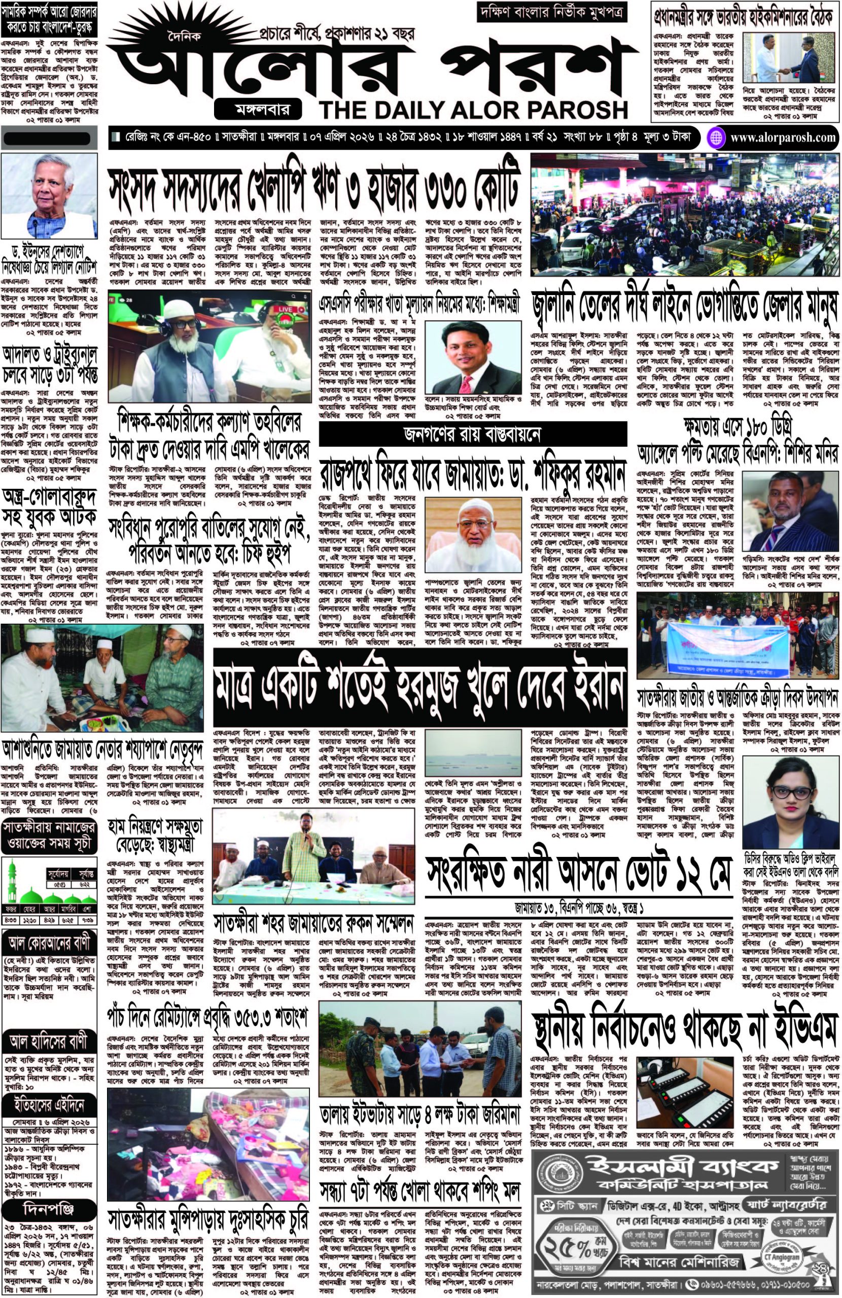 আজ ০৭ এপ্রিল ২০২৬; দৈনিক আলোর পরশ পত্রিকার পড়ুন ই-পেপারে-
