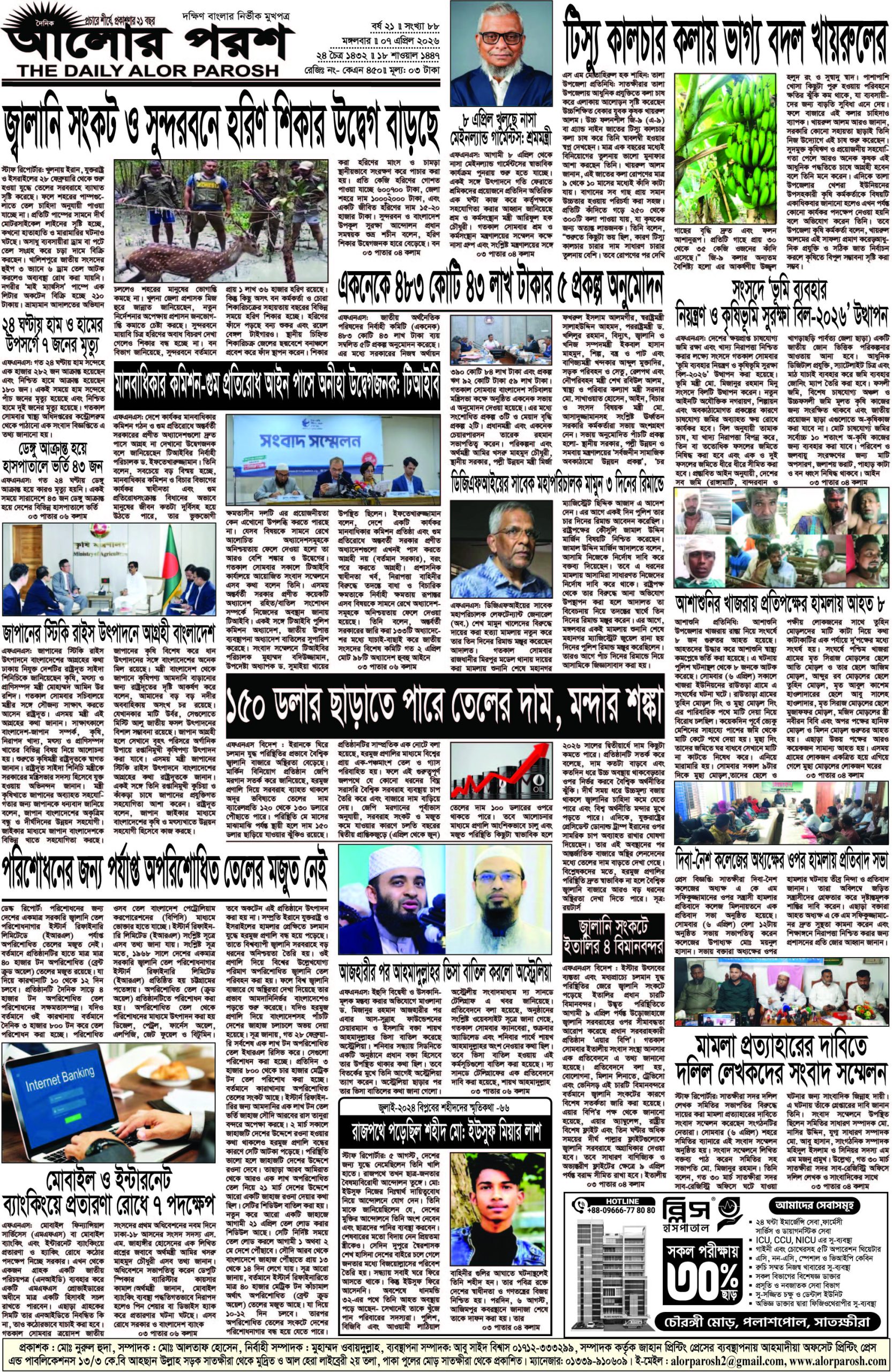 আজ ০৩ এপ্রিল ২০২৬; দৈনিক আলোর পরশ পত্রিকা পড়ুন ই-পেপারে