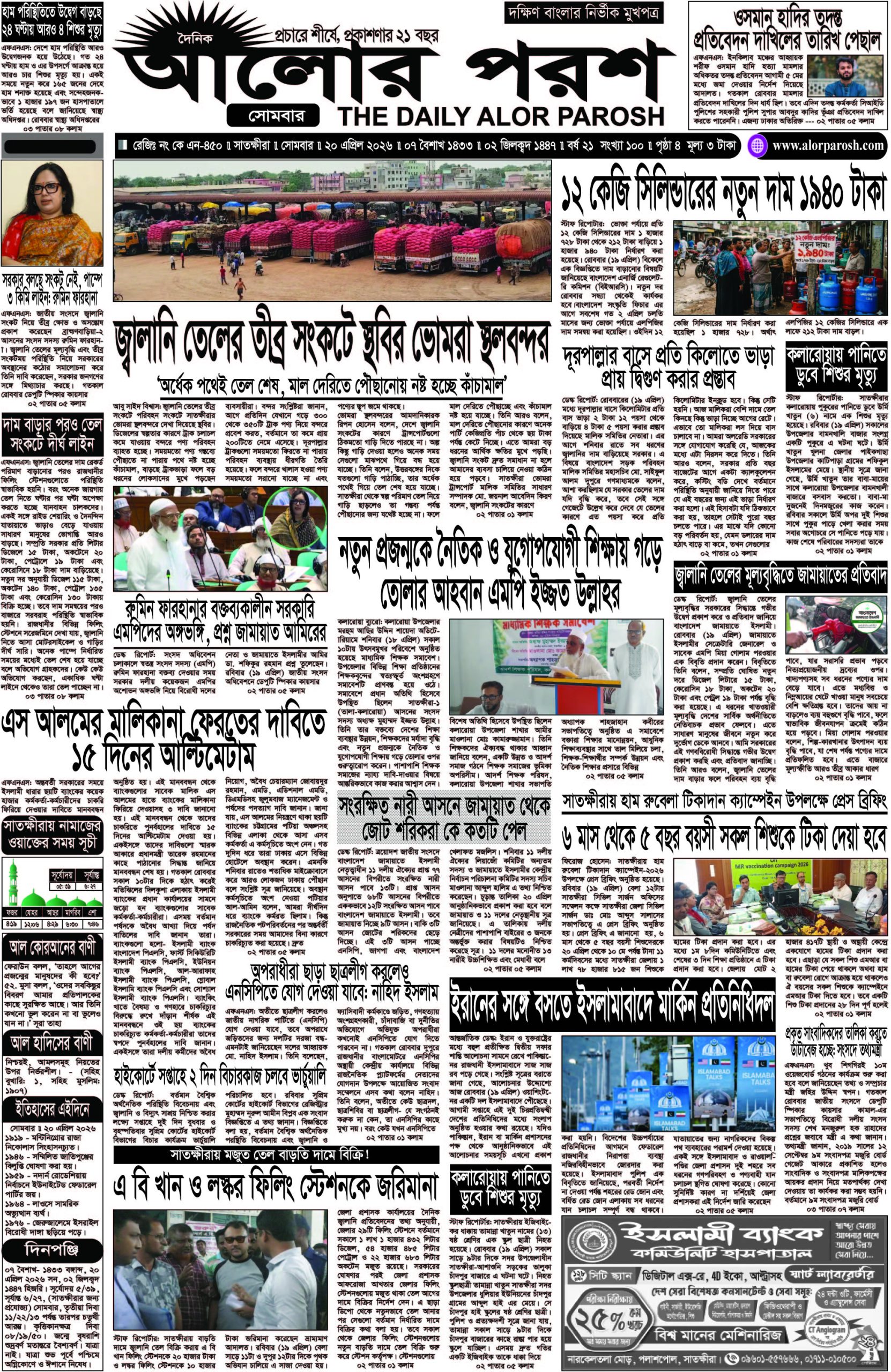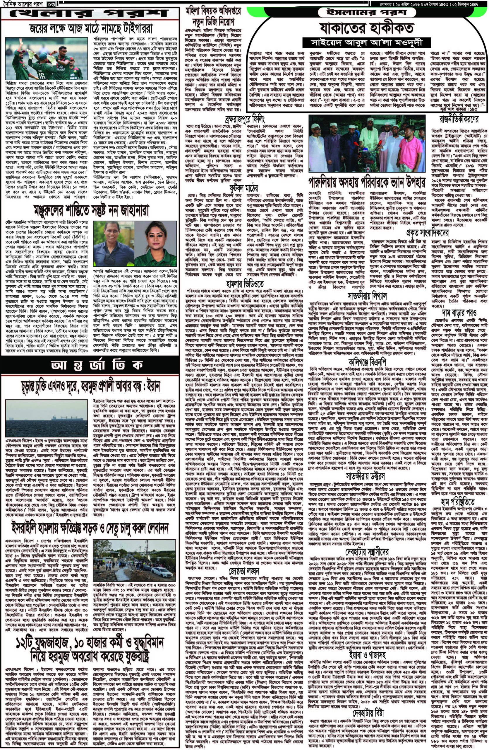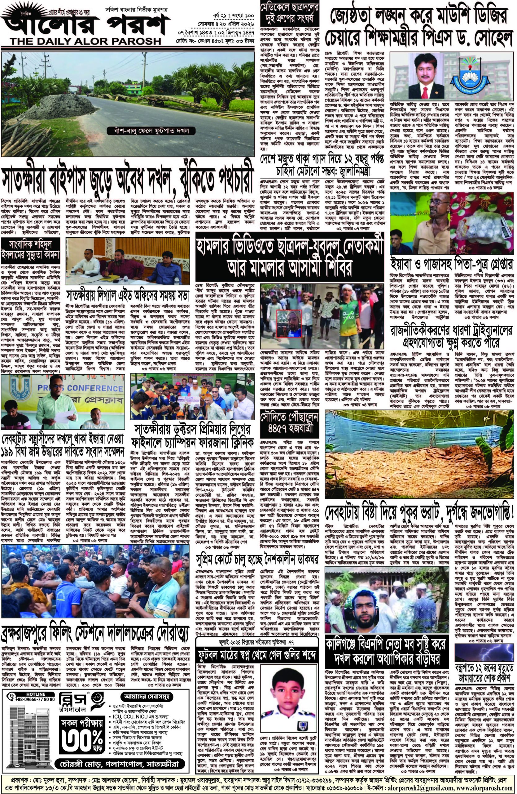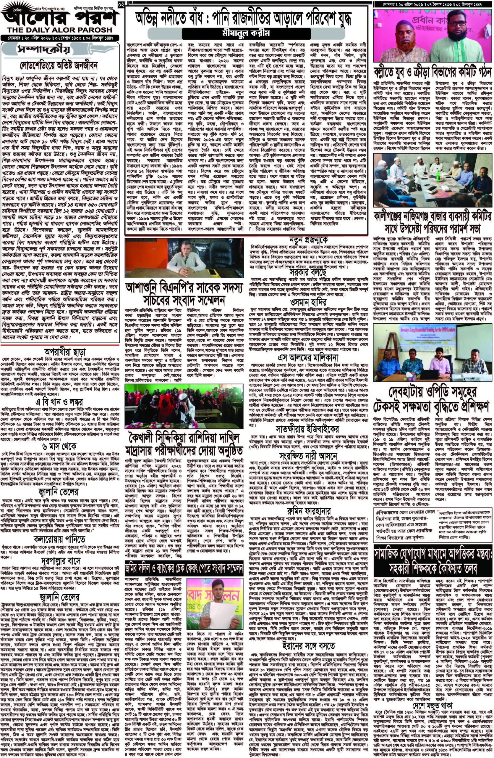 আজ ২০ এপ্রিল ২০২৬; দৈনিক আলোর পরশ পড়ুন ই-পেপারে: