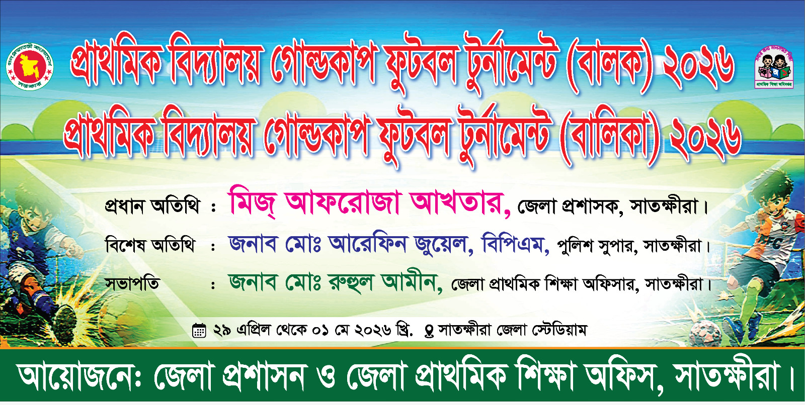 স্টাফ রিপোর্টার: সরকারি প্রাথমিক বিদ্যালয়ের শিক্ষার্থীদের লেখাপড়ার পাশাপাশি খেলাধুলার মাধ্যমে শারীরিক, মানসিক ও নান্দনিক বিকাশ এবং সহিষ্ণুতা ও প্রতিযোগিতার মনোভাব গড়ে তোলার লক্ষ্যে প্রতিবছরের মতো এবারও আয়োজন করা হচ্ছে প্রাথমিক বিদ্যালয় গোল্ডকাপ ফুটবল টুর্নামেন্ট (বালক ও বালিকা)। সারা দেশের ন্যায় ইতিমধ্যে সাতক্ষীরা জেলার ইউনিয়ন, পৌরসভা ও উপজেলা পর্যায়ের খেলা সম্পন্ন হয়েছে। আগামী ২৯ এপ্রিল সকাল ৯টায় সাতক্ষীরা জেলা স্টেডিয়ামে জেলা পর্যায়ের টুর্নামেন্টের উদ্বোধন অনুষ্ঠিত হবে। উদ্বোধনী অনুষ্ঠানে প্রধান অতিথি হিসেবে উপস্থিত থাকবেন সাতক্ষীরা জেলা প্রশাসক আফরোজা আখতার। বিশেষ অতিথি হিসেবে উপস্থিত থাকবেন পুলিশ সুপার মো: আরেফিন জুয়েল, বিপিএম। অনুষ্ঠানে সভাপতিত্ব করবেন জেলা প্রাথমিক শিক্ষা অফিসার মোঃ রুহুল আমীন। জেলা প্রাথমিক শিক্ষা অফিস সূত্রে জানা গেছে, এবারের টুর্নামেন্টে জেলার বিভিন্ন উপজেলার চ্যাম্পিয়ন দলগুলো অংশ নিচ্ছে। উপজেলা পর্যায়ের চ্যাম্পিয়ন দলসমূহ: আশাশুনি উপজেলা: বালক- আনুলিয়া সরকারি প্রাথমিক বিদ্যালয়, বালিকা- সরাপপুর সরকারি প্রাথমিক বিদ্যালয়। কলারোয়া উপজেলা: বালক- কয়লা সরকারি প্রাথমিক বিদ্যালয়, বালিকা- মেহমানপুর সরকারি প্রাথমিক বিদ্যালয়। কালিগঞ্জ উপজেলা: বালক- গণেশপুর সরকারি প্রাথমিক বিদ্যালয়, বালিকা- এন. এন. টি. সরকারি প্রাথমিক বিদ্যালয়। তালা উপজেলা: বালক ও বালিকা উভয়- লক্ষণপুর সরকারি প্রাথমিক বিদ্যালয়। দেবহাটা উপজেলা: বালক- টাউন শ্রীপুর সরকারি প্রাথমিক বিদ্যালয়, বালিকা- হাদিপুর সরকারি প্রাথমিক বিদ্যালয়। শ্যামনগর উপজেলা: বালক- হরিণ নগর হাটখোলা সরকারি প্রাথমিক বিদ্যালয়, বালিকা- পূর্ব মিরগাং সরকারি প্রাথমিক বিদ্যালয়। সাতক্ষীরা সদর উপজেলা: বালক- ভাড়ুখালী সরকারি প্রাথমিক বিদ্যালয়, বালিকা- ছয়ঘড়িয়া সরকারি প্রাথমিক বিদ্যালয়। টুর্নামেন্টের সমাপনী ও পুরস্কার বিতরণ অনুষ্ঠান আগামী ১ মে বিকেল ৩টায় অনুষ্ঠিত হবে বলে জানিয়েছে জেলা প্রাথমিক শিক্ষা অফিস। জেলা প্রাথমিক শিক্ষা অফিসার মোঃ রুহুল আমীন জানান, এ প্রতিযোগিতা জেলার প্রাথমিক শিক্ষার্থীদের মধ্যে খেলাধুলার প্রতি আগ্রহ বৃদ্ধি এবং সুস্থ প্রতিযোগিতার মনোভাব গড়ে তুলতে গুরুত্বপূর্ণ ভূমিকা রাখবে।